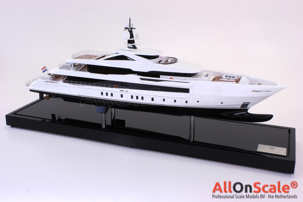Built at 1:50 and 1:75 scale, these models reflect the yacht’s bold shape and elegant lines.
