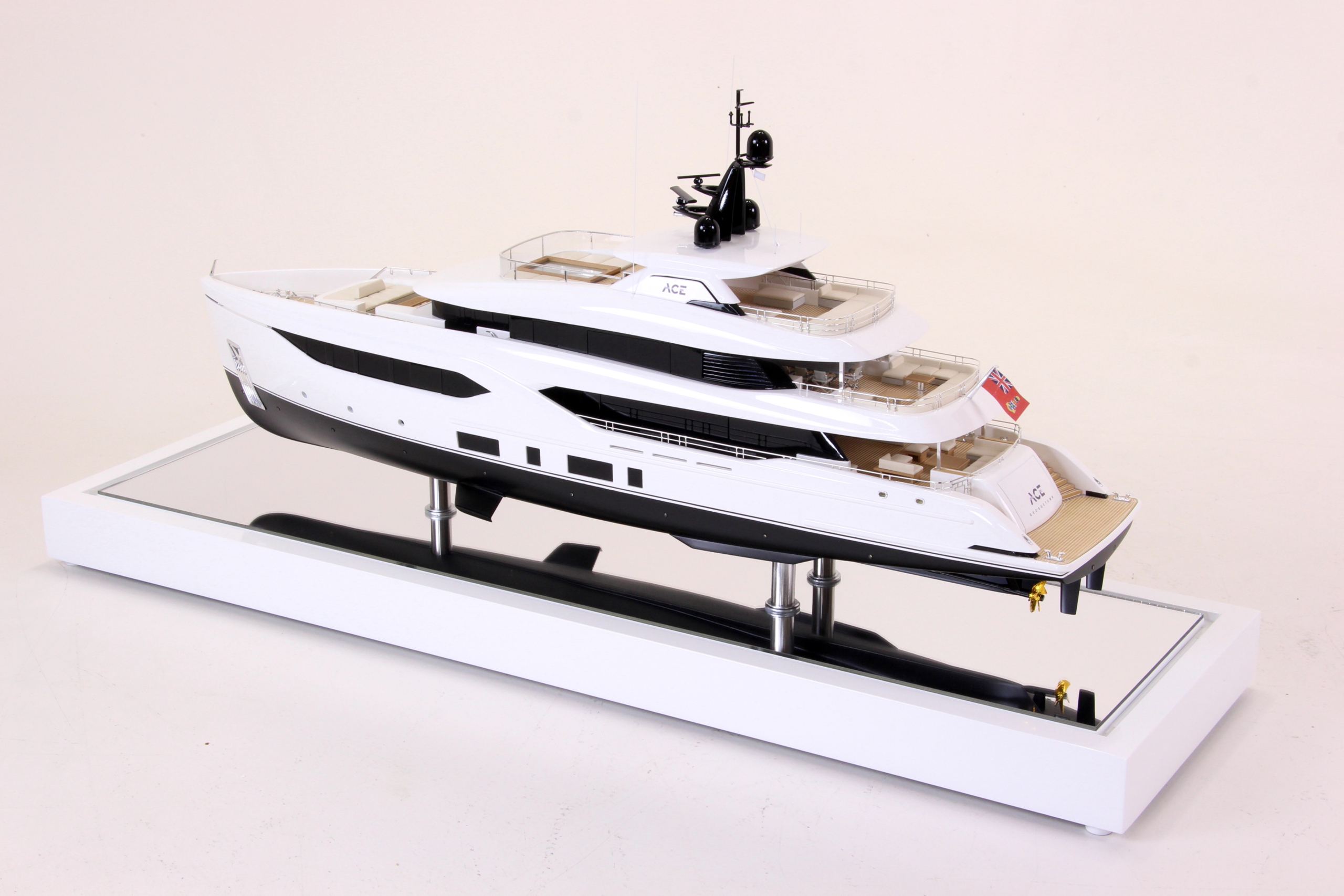 The ACE motor yacht represents a unique blend of quiet power and custom elegance — and translating that into a scale model demanded both technical precision and design sensitivity. In collaboration with Conrad Shipyard, we focused on recreating the yacht’s signature silhouette, open decks, and bold proportions. The result is a refined 1:60 luxury yacht model that captures not only the vessel’s form, but its full character — making it a true showcase piece in miniature.