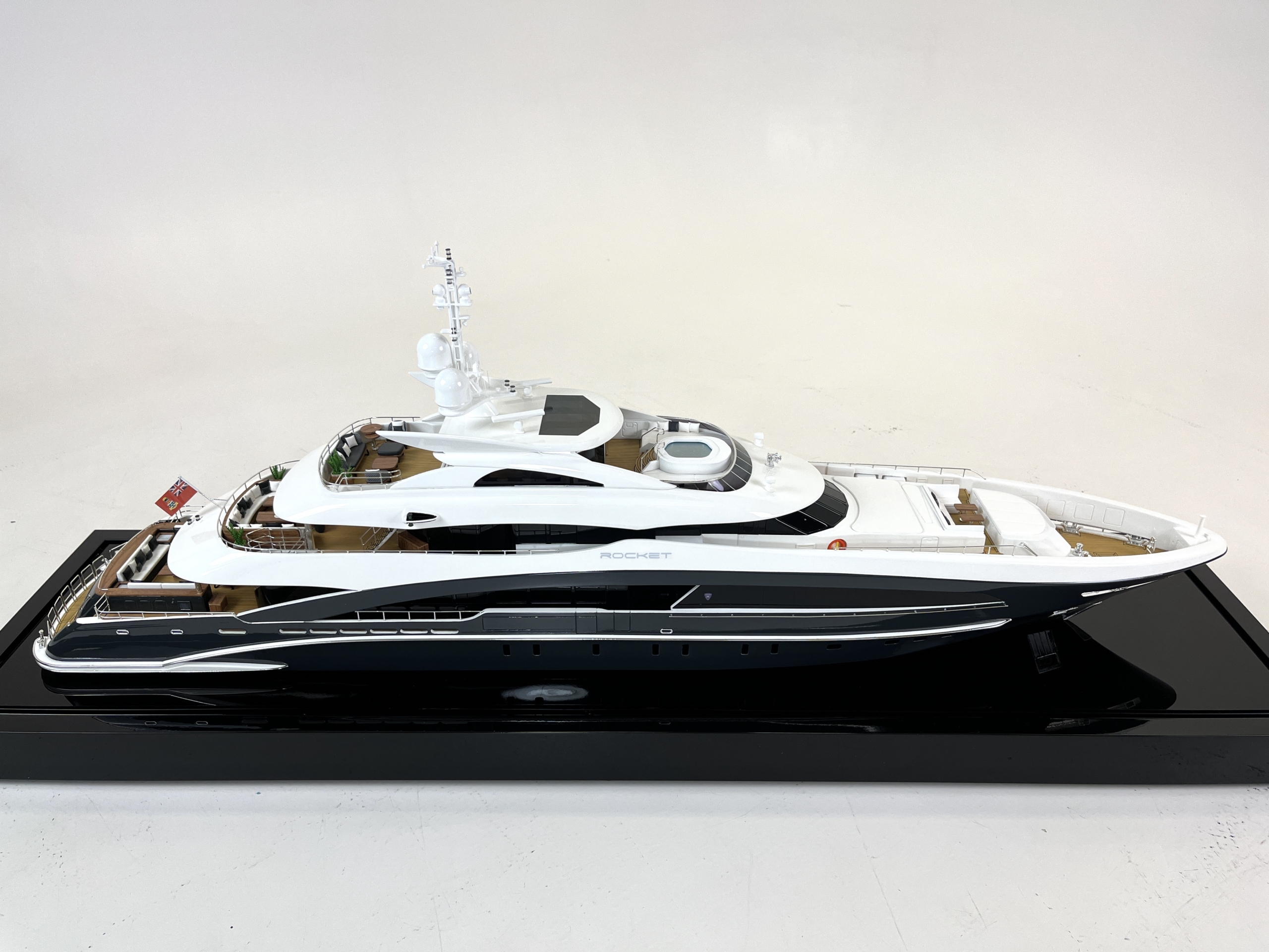 The Rocket Yacht is a bold expression of futuristic design and high-speed ambition. With its sharp lines, sculpted profile, and commanding presence, it pushes the boundaries of modern yacht aesthetics. The scale models reflect that same intensity — every surface, angle, and contrast was carefully translated into a compact, high-precision piece that captures the spirit of the original.